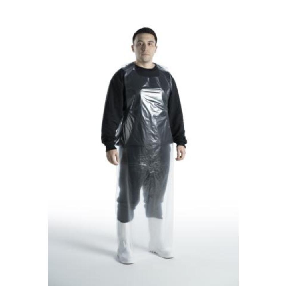Avental frente-única polietileno que protege a parte frontal do corpo de uma forma mais maleável. Geralmente é utilizado por trabalhadores que atuam em contato com água, utilizando botas impermeáveis e em alguns casos mangotes.