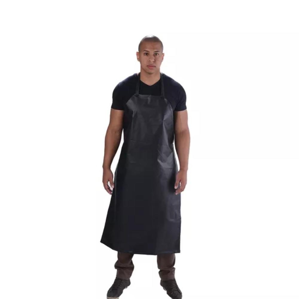 Avental para proteção, tipo impermeável, confeccionada em tecido KP400 dupla face, com tira soldada no mesmo material e engate para ajuste ou ilhós