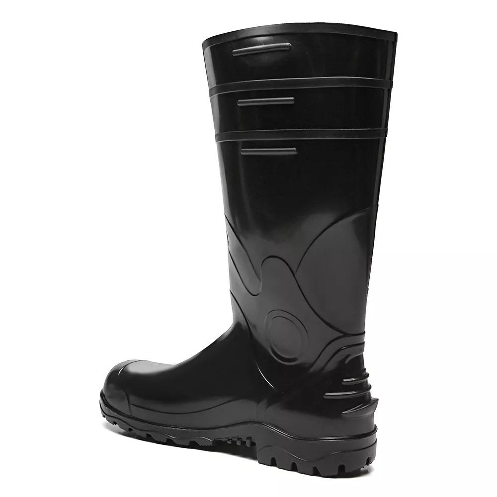 O cano longo de 320 mm protege toda a parte inferior da perna, e a estrutura reforçada conta com estrias horizontais laterais para facilitar o calce e estria no calcanhar para descalce rápido. O design ergonômico, com ranhura no tornozelo, confere maior firmeza e segurança ao caminhar, mesmo em pisos molhados.