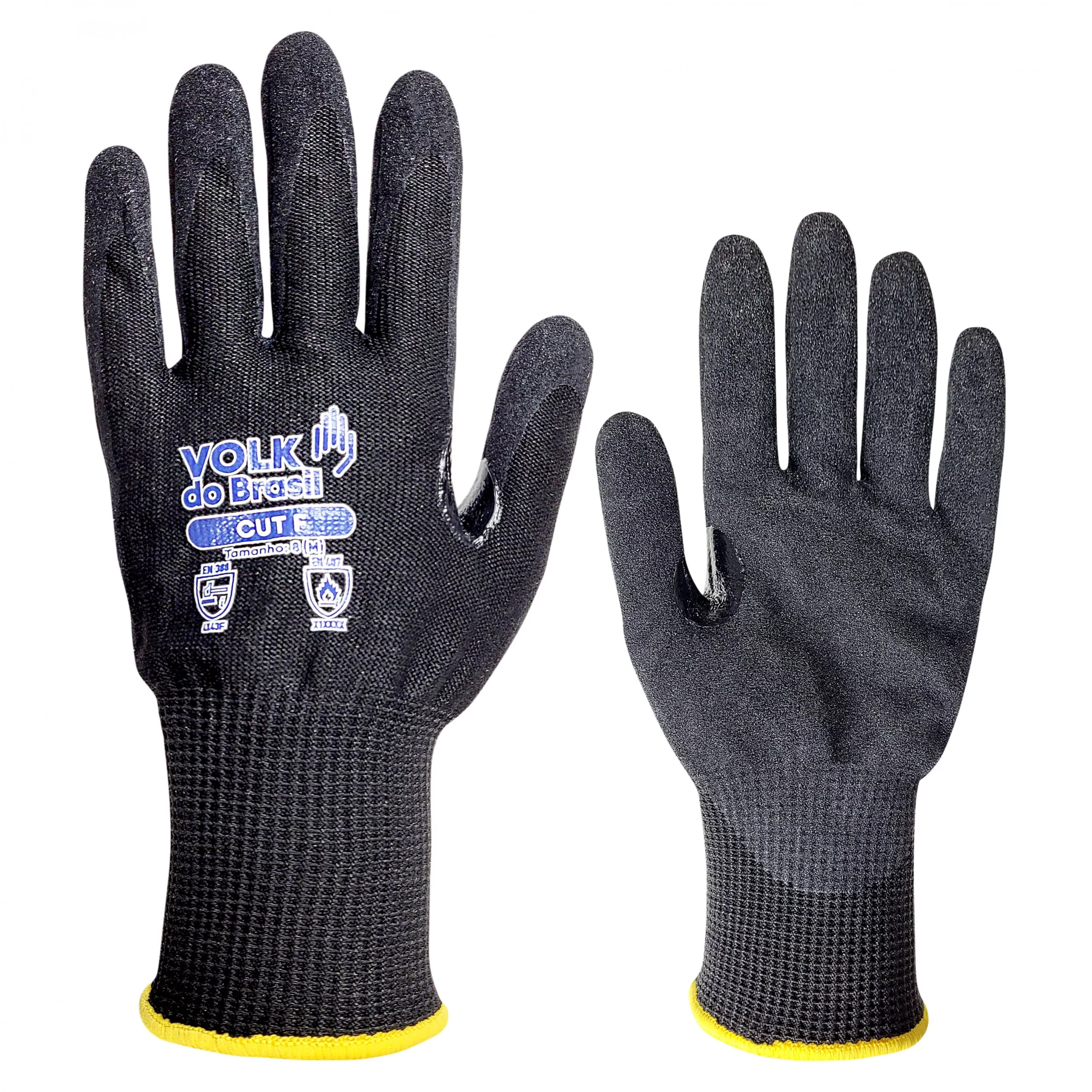 Luva de segurança confeccionada em fios de HPPE e basalto, revestida em nitrila tipo sandy na palma e dedos, com punho tricotado com inserção de fibras elásticas e acabamento em fibras sintéticas. Indicada para proteção das mãos contra agentes mecânicos e térmicos.